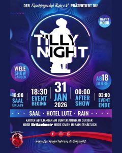 Bitte auswählen Tillynight 2026 - Bilder 1. Bunter Abend 2026 - Bilder 3. Bunter Abend 2026 - Bilder 4. Bunter Abend 2026 - Bilder Bunter Nachmittag 2026 - Bilder 2. Bunter Abend 2026 - Bilder Rosenball 2025 – Bilder